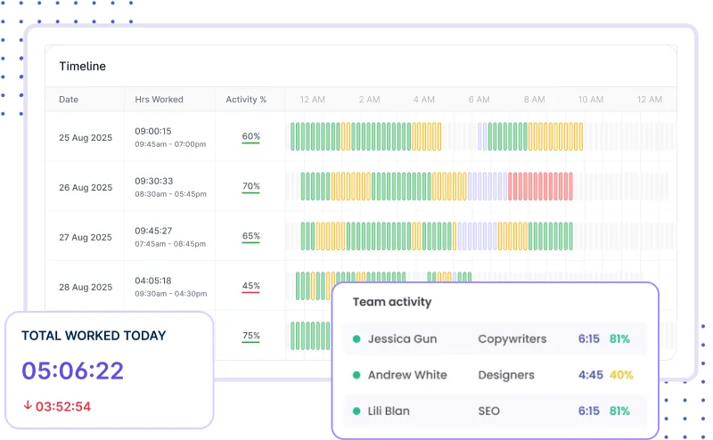 Ans: No. Time tracking shows hours, but proof of work adds activity, task context, and visibility that make billed hours credible and trusted.