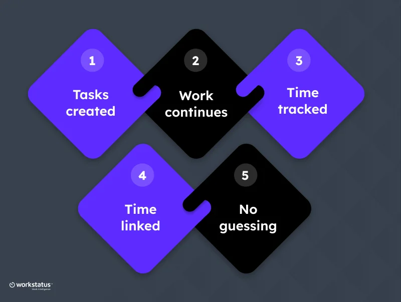Tasks show what happened. Workstatus shows how, when, and for how long, making work clear and defensible.